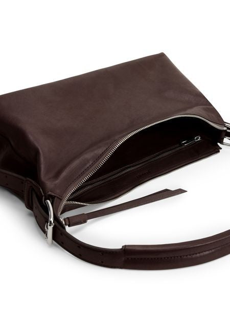 説明 : Shoulder bag, smooth leather, single handle, thin strap, adjustable strap, gussets and zipper closure, zippered interior pocket, zipper closure, visible topstitching.