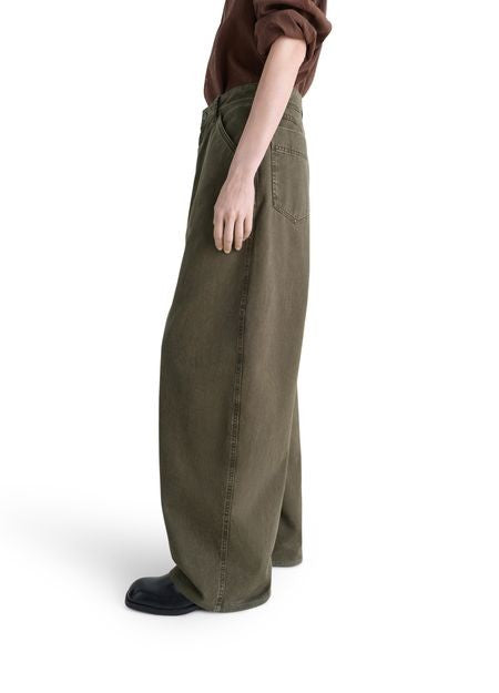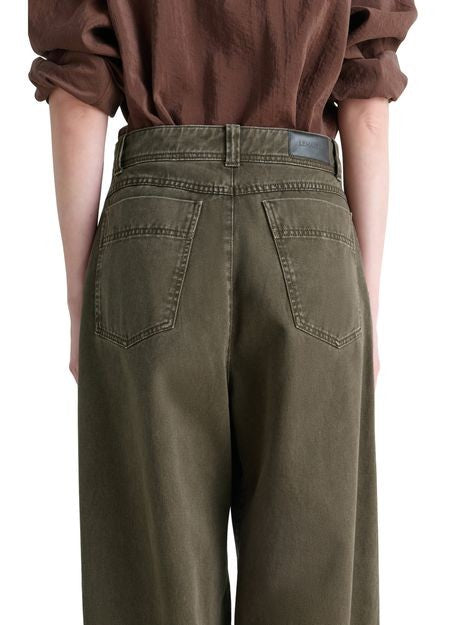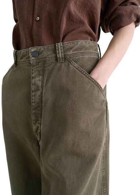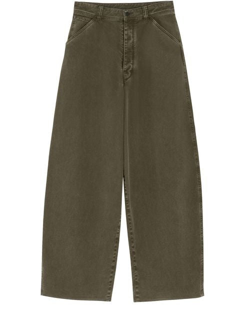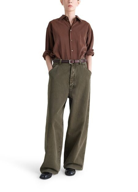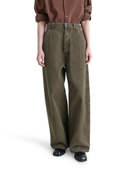 説明 : Buttoned zipper closure, two front pockets, back patch pocket, visible stitching, belt loops.