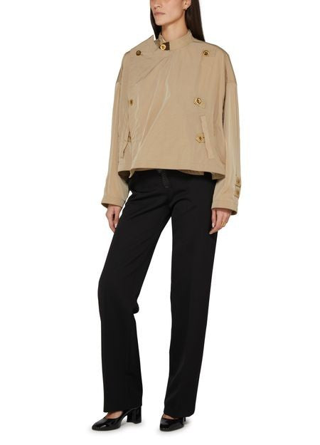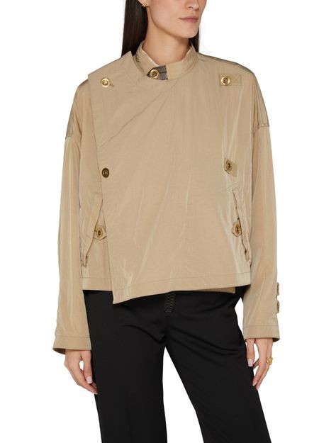 説明 : ロングスリーブ, ショート, サイドポケット, ボタン留め, フロントボタン留め, ゴールド仕上げ.