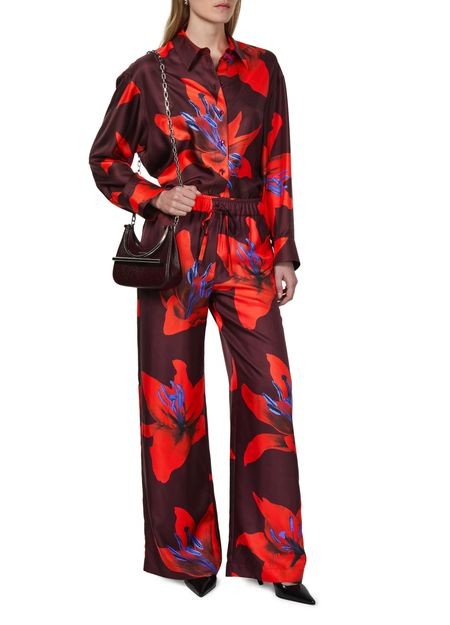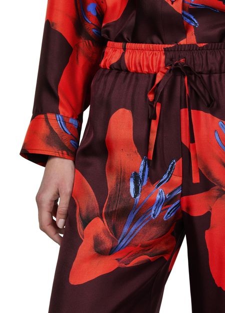 説明 : 目に見えるステッチ, アンクル丈, カジュアルパンツ, ルーズフィット, 花柄, 伸縮性のあるドローストリング.