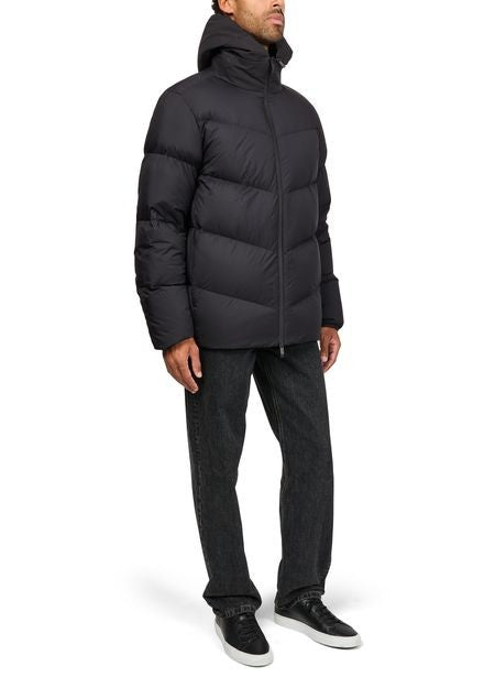 説明 : Short, hood, long-sleeved, zipper closure, padded texture.