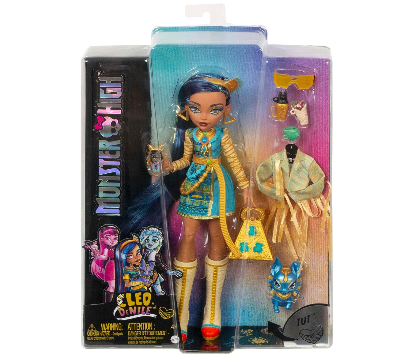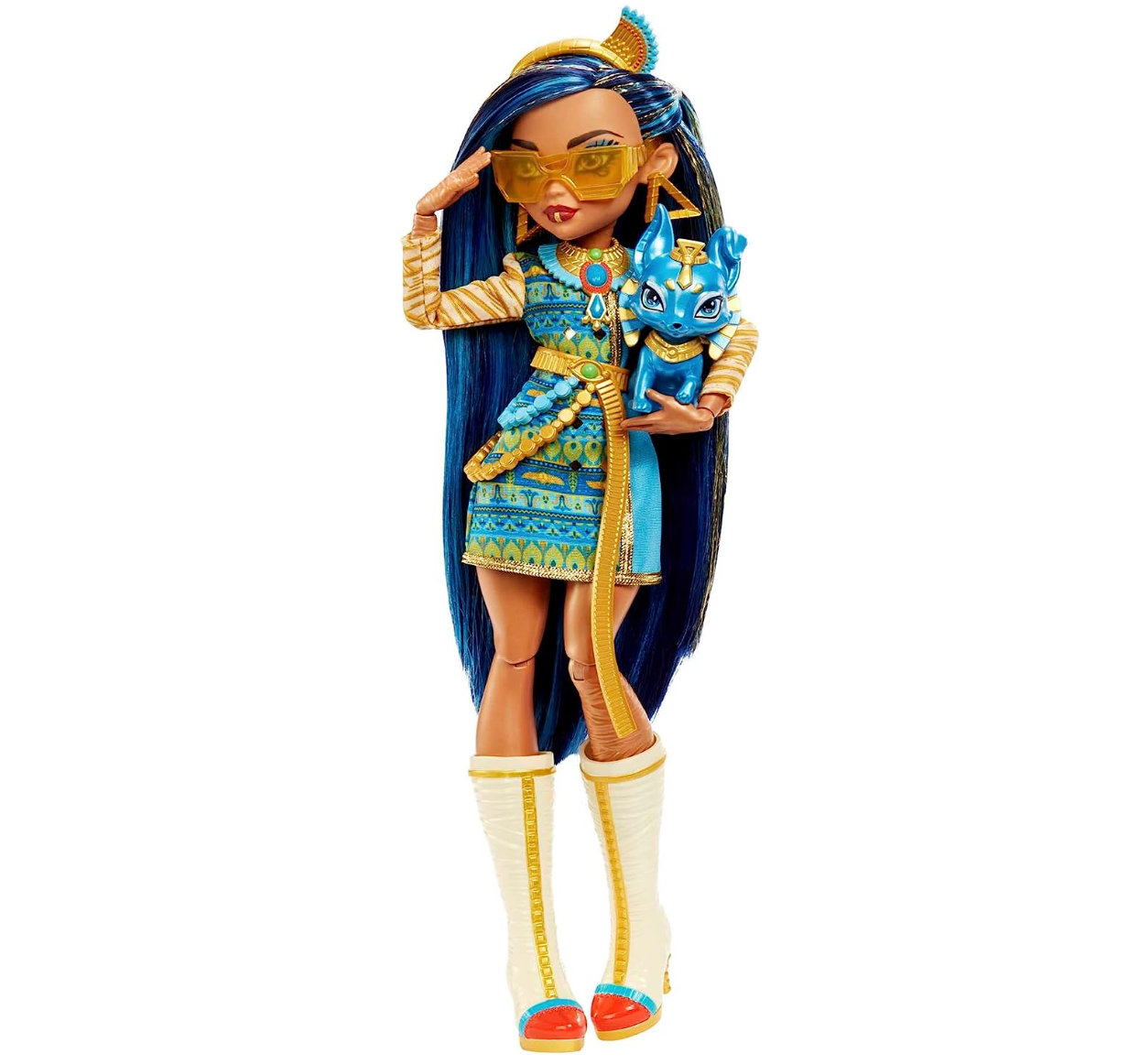 Monster High Cleo De Nile Fashion Doll with Blue Streaked Hair, Signature Look, Accessories & Pet Dog