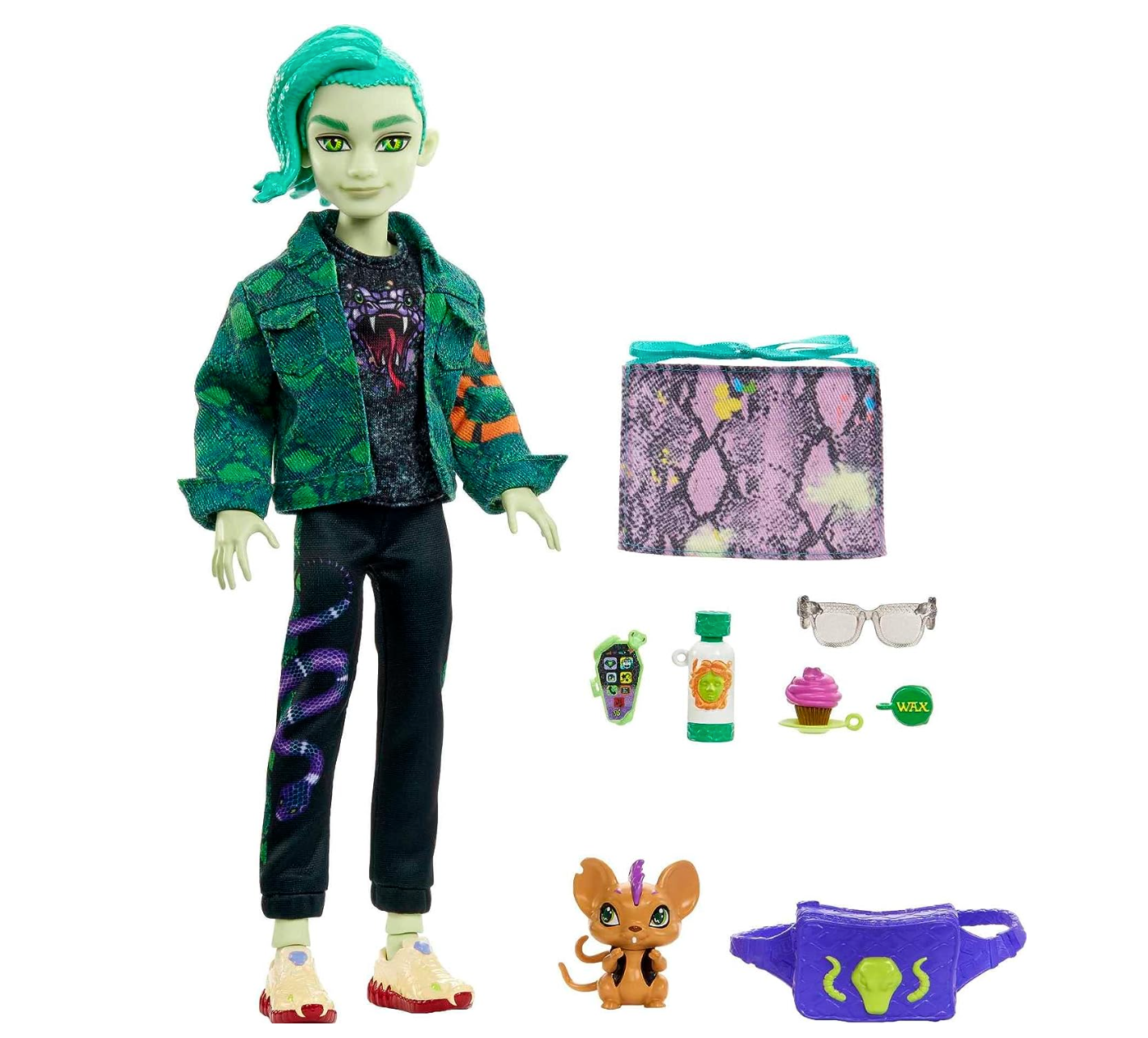 Monster High Deuce Gorgon Fashion Doll with Denim Snake Jacket, Signature Look, Accessories & Pet