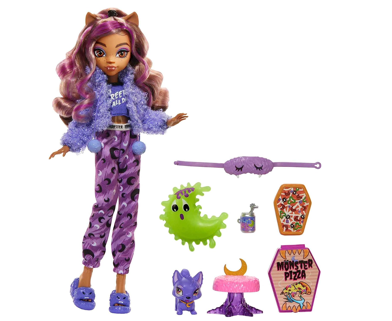 Monster High Doll, Clawdeen Wolf Creepover Party Set with Pet Dog Crescent, Sleepover Clothes and Accessories