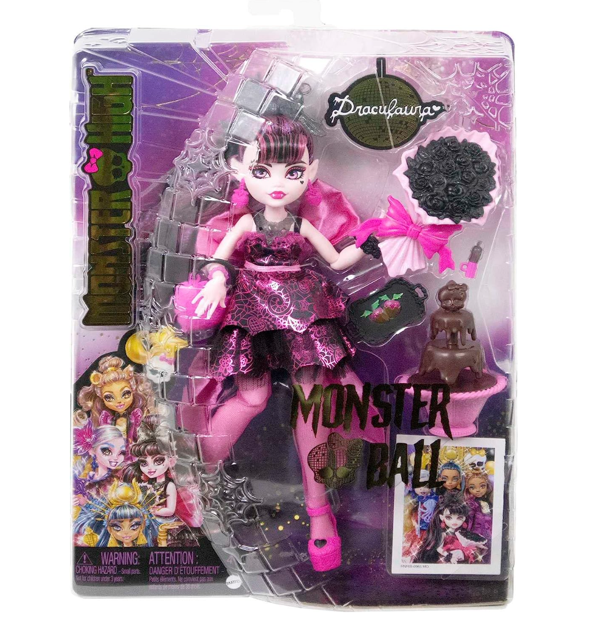 A spooktacular night awaits these Monster High dolls at the Monster Ball! They wear scarily-stunning fashions and come with party-themed accessories like ballroom bites that add to the frightful fun. Kids 4 years old and up will love playing out all sorts of screamtastic, soiree-themed adventures for their dolls! Each sold separately, subject to availability. Fully articulated. Dolls cannot stand alone. Colors and decorations may vary.