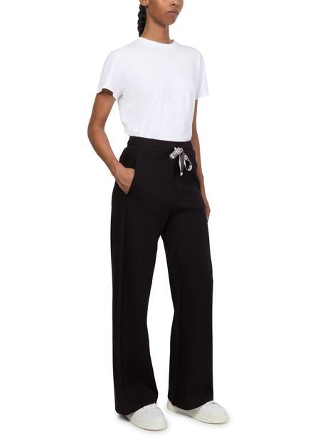 説明 : Adjustable drawstring waist, bow fastening, back pocket, welt pockets, drawstring hem, front logo.