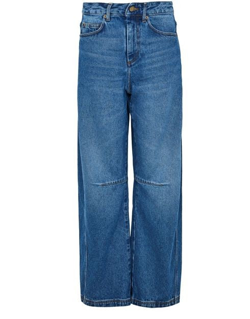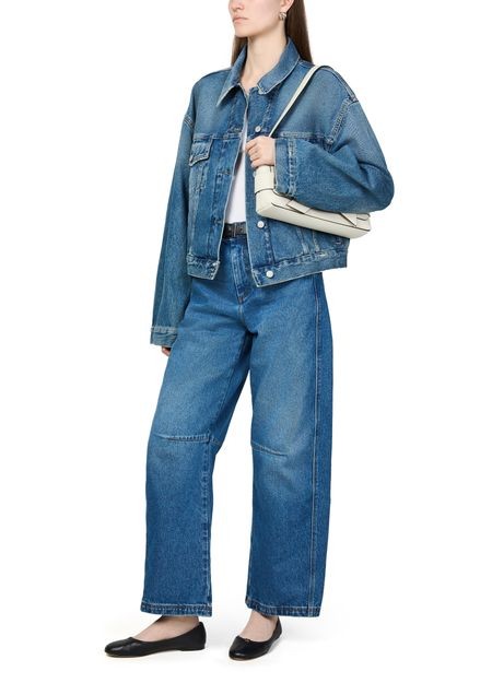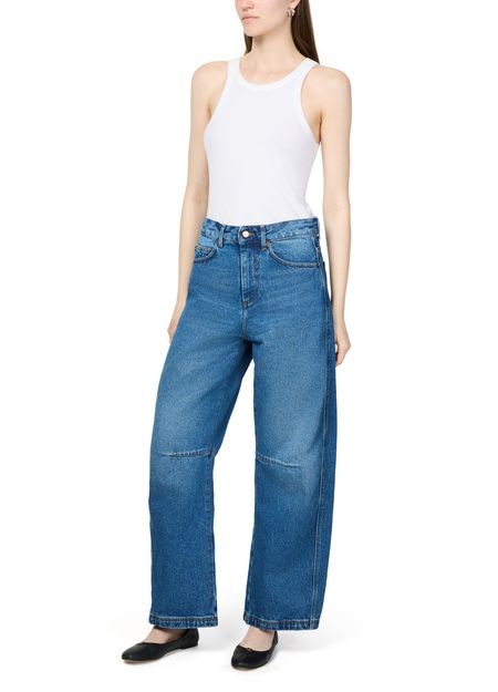 説明 : ファイブポケットスタイル, ボタン&コンシールファスナー開閉, デニム, コントラストステッチ, 背面レザーロゴ, ルーズフィット, ベルトループ, アンクル丈, ローウエストフィット.