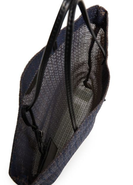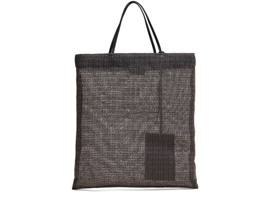 説明 : shopper / tote bag, open weave, double handles, large interior compartment, detachable interior purse.