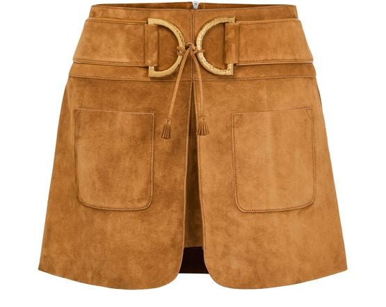 説明 : Dリング ベルベット スエード製 ミニスカート.