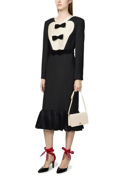 説明 : ベルトループ, バックファスナー開閉, アップリケロゴ, 目に見えるステッチ, vネック, ボタン付きカフス, フレアドレス, ロングスリーブ, 膝丈, ドローストリングで調整可能なウエスト.