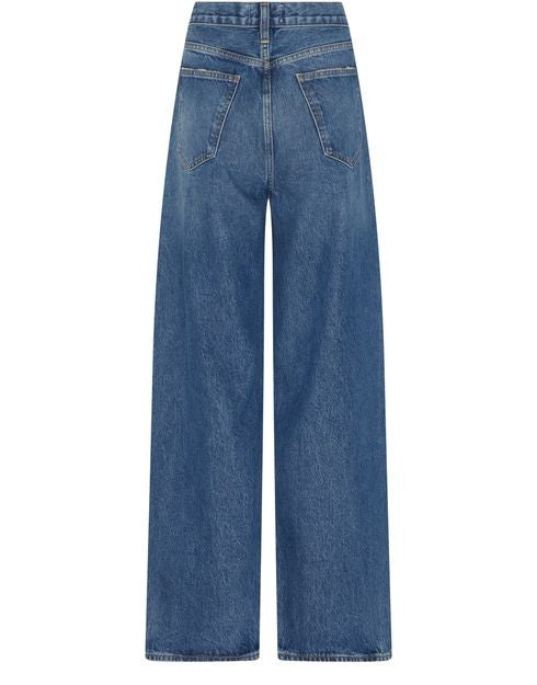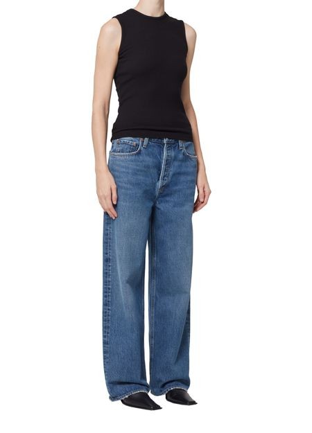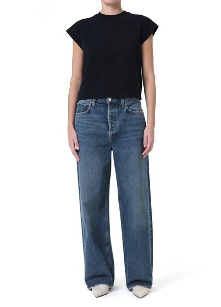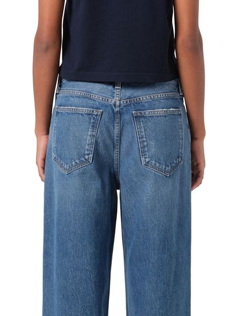 説明 : ベルトループ, 目に見えるステッチ, ボタン&コンシールファスナー開閉, アンクル丈, ファイブポケットスタイル, デニム, ストレートカット, ハイウエストフィット.