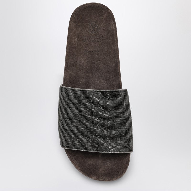Brunello Cucinelli Precious Taupe Slides In Suede