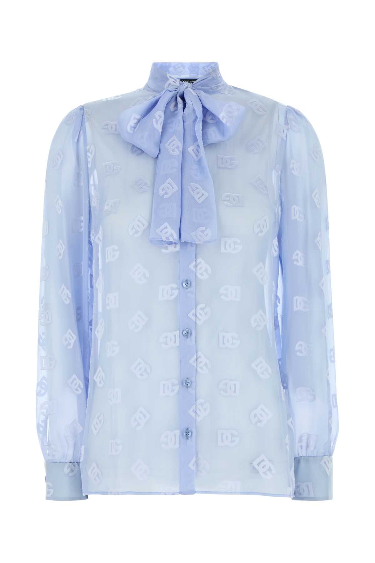 Dolce Gabbana ドルチェ&ガッバーナライトブルーシルクブレンドシャツ