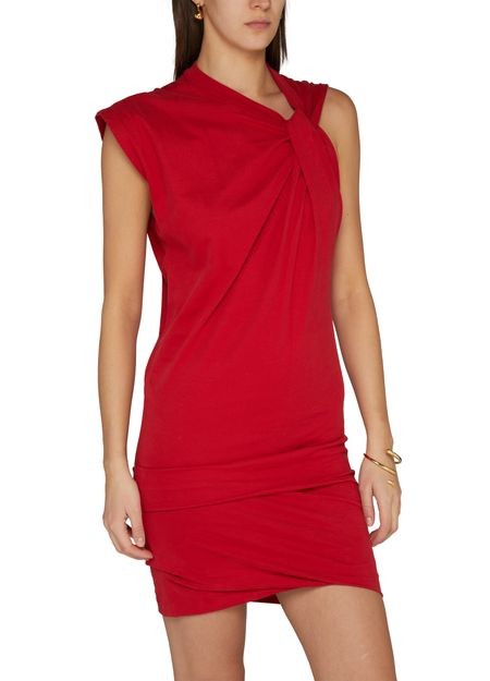 説明 : アップリケロゴ, 目に見えるステッチ, ミニドレス, ショートスリーブ, ニットドレス, アシンメトリーネックライン, キャップ袖.