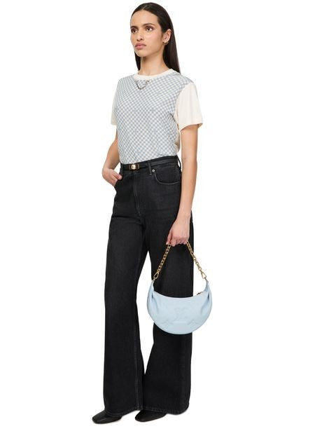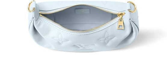 説明 : バゲットバッグ, ファスナー開閉, 刻印ロゴ, 前面ロゴ, ゴールド仕上げ, 斜め掛け, 手持ち, 飾りステッチ, ワイドストラップ, チェーンストラップ.