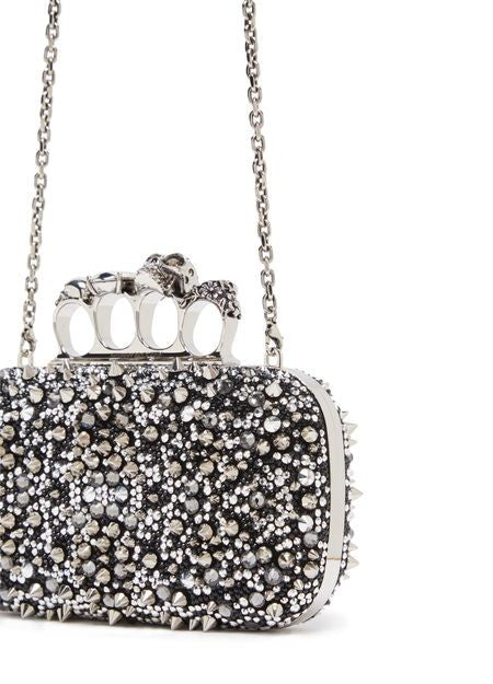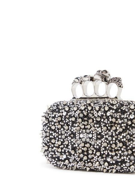 説明 : シングルコンパートメント, スタッズディテール, ビーズ詳細/パール詳細, ミノディエール クラッチバッグ, 手持ち, 斜め掛け, チェーンストラップ, シングルハンドル, 取り外し可能なストラップ, シルバーフィニッシュ.