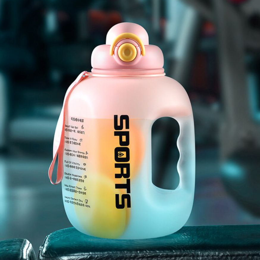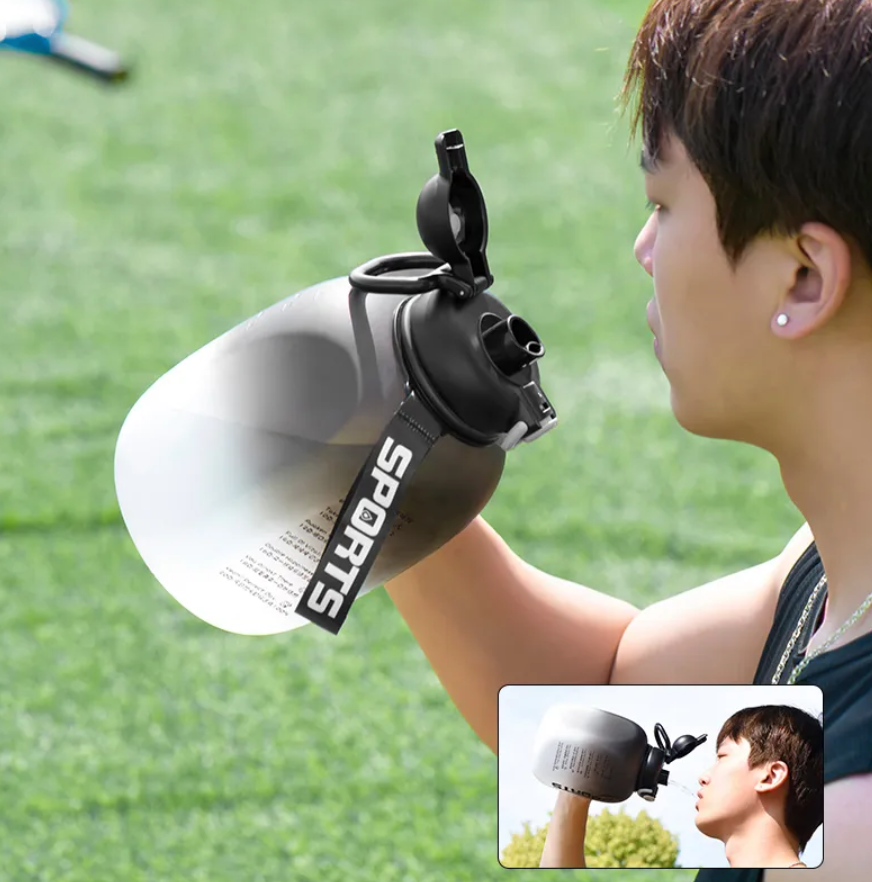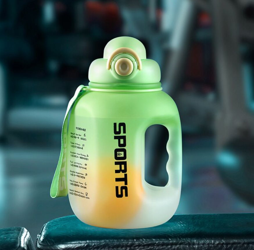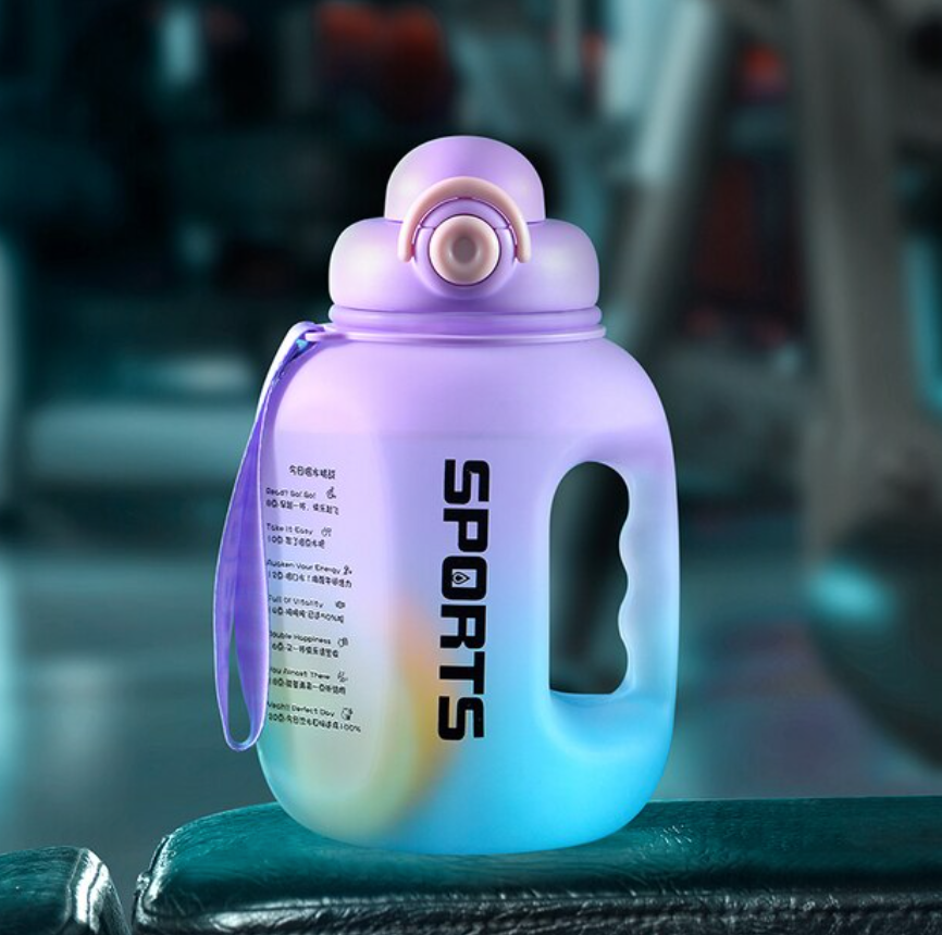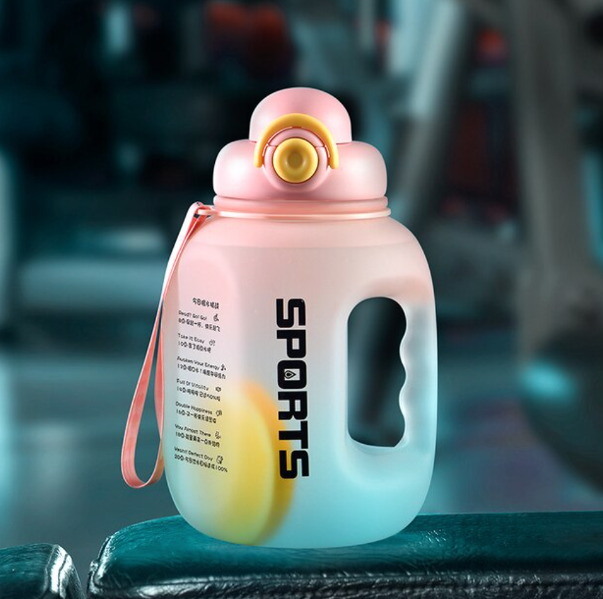 ストロー付きianxiウォーターボトル,プラスチック製フィットネスボトル,ポータブル,学生用,学校用,旅行用