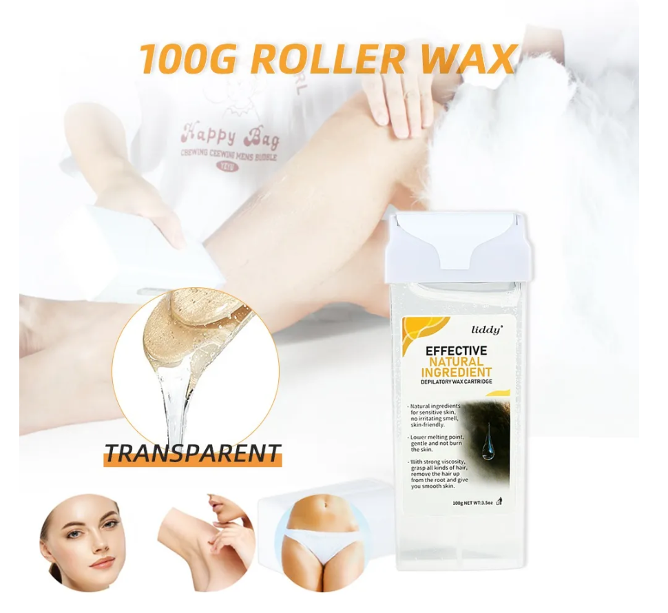 脱毛ワックスカートリッジ,100g,ウォーム/スパチュラ,透明,天然ボディヘアクリーム,加熱ローラー