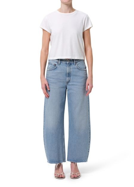 説明 : ファイブポケットスタイル, ボタン&コンシールファスナー開閉, 目に見えるステッチ, ベルトループ, アンクル丈, ルーズフィット.