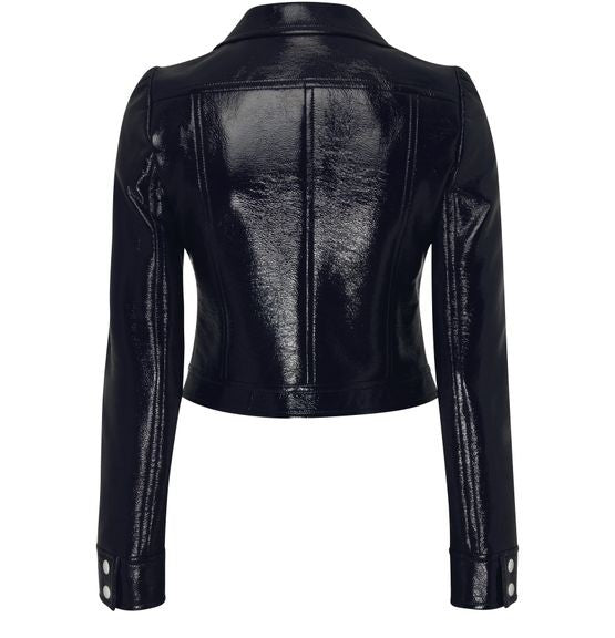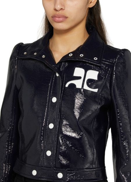 説明 : ロングスリーブ, フロントボタン留め, 前面ロゴ, 胸元ロゴ, ラベルにロゴ, スタッズディテール, クロップ, シルバー仕上げ.