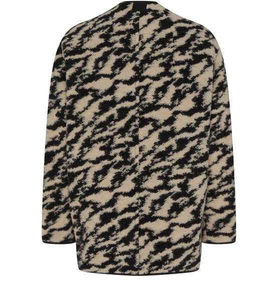 説明 : フロントボタン留め, リバーシブル, 背面ロゴ, アップリケロゴ, ショート, サイドウェルトポケット, ロングスリーブ, カラーレス, 総柄, プリント.