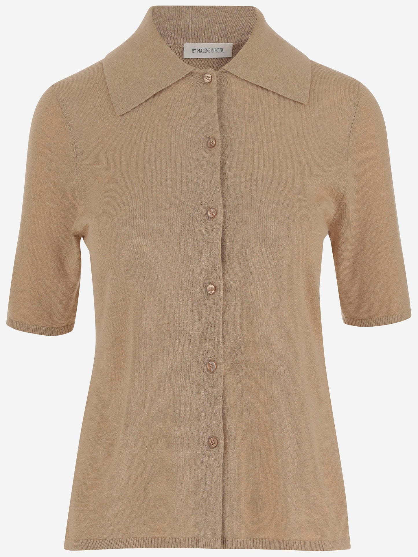 ウールブレンドで作られたシャツ 襟 半袖 フロントボタンプラケット まっすぐな裾 リブ付きエッジ ベージュ 中国製 組成:60%リヨセル、32%ウール、8%シルク モデルはサイズを着用しています S. モデル測定: 高さ:175 cm バスト:86.5 cm 腰:65 cm ヒップ:92 cm 肩:40 cm