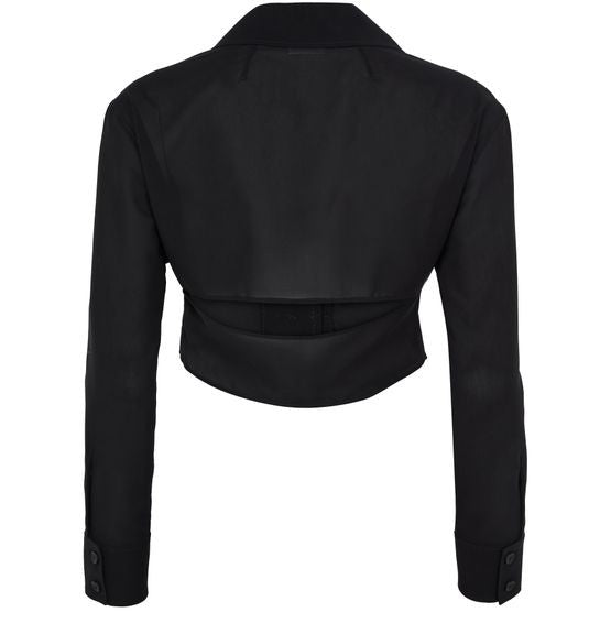 説明 : コンシールファスナー, アップリケロゴ, 目に見えるステッチ, シャツカラー, ボタン付きカフス, シャツ, ブレストポケット, フラップポケット, ロングスリーブ, カフスボタン付きスリーブ.
