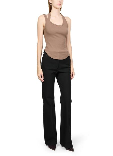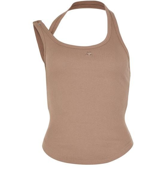 説明 : Slim fit, ribbed, round neck, asymmetric cut.