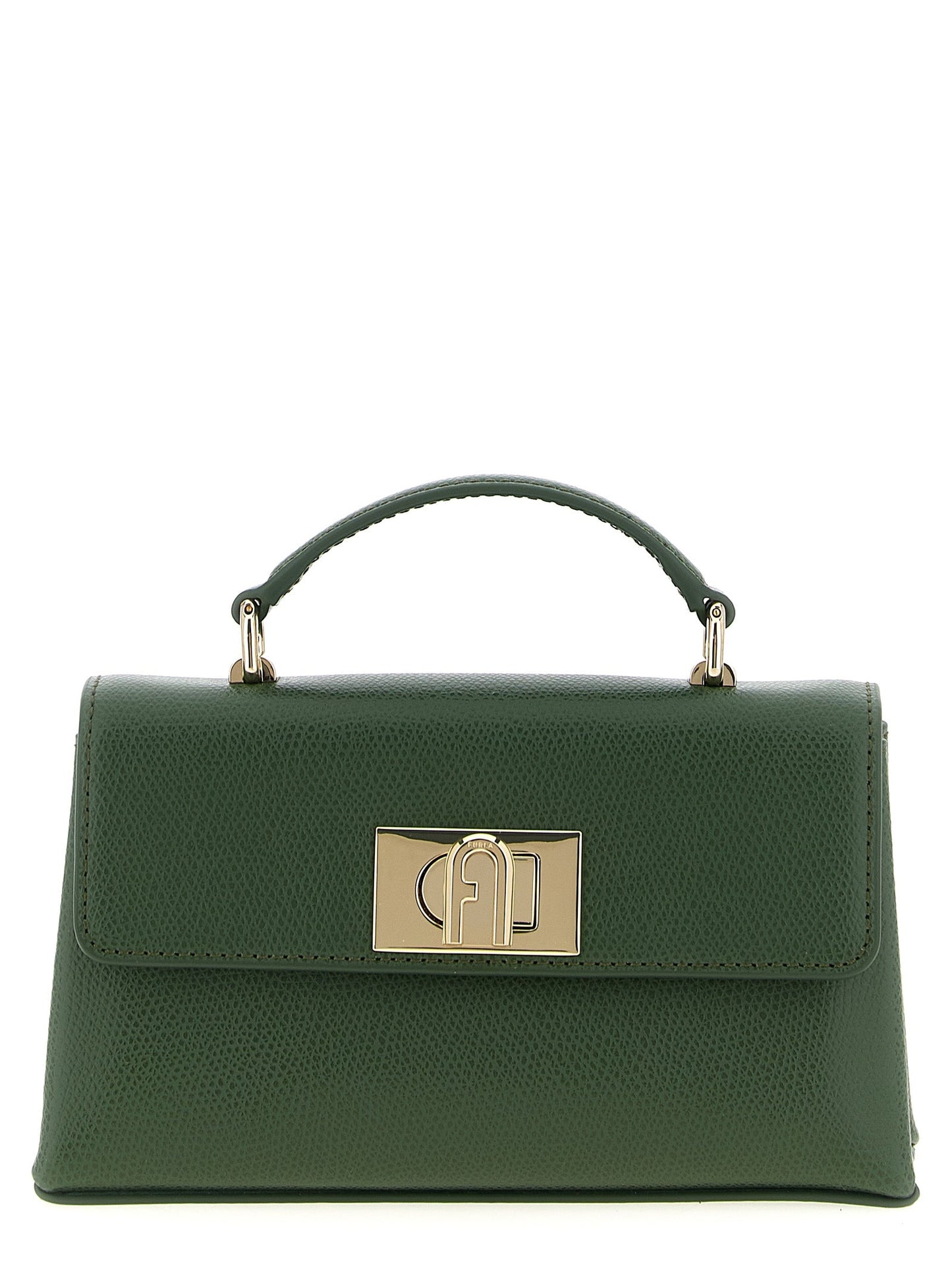 • 'Furla 1927' mini crossbody bag in fine printed leather with a garnet texture, flap closure with metal spin with Arco logo, fixed handle, removable chain shoulder strap. • FURLA • 'Furla 1927' mini crossbody bag • W 16.5 x H 10 x D 4.3 cm