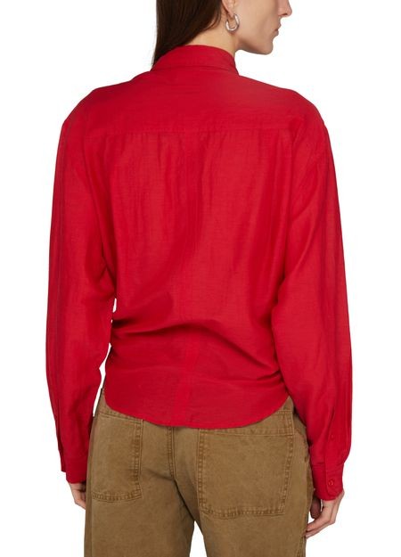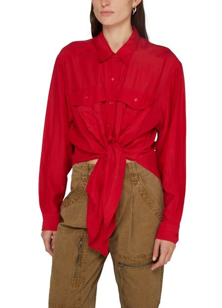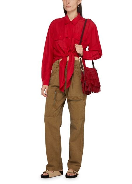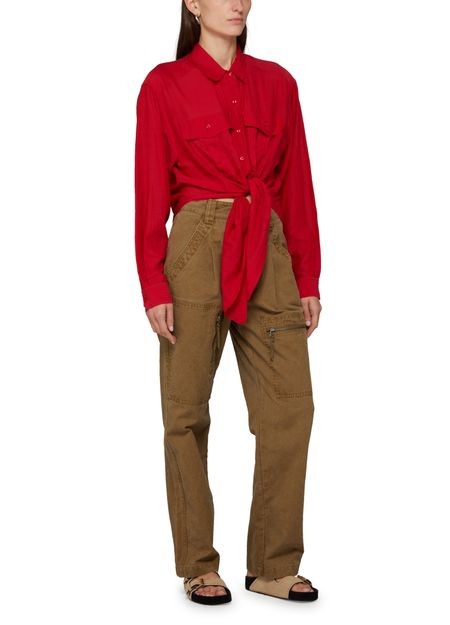 説明 : フロントボタン留め, アップリケロゴ, 目に見えるステッチ, シャツカラー, クロップ, フラップポケット, 2フロントポケット, ロングスリーブ, ブラウス, ボタン付きカフス.