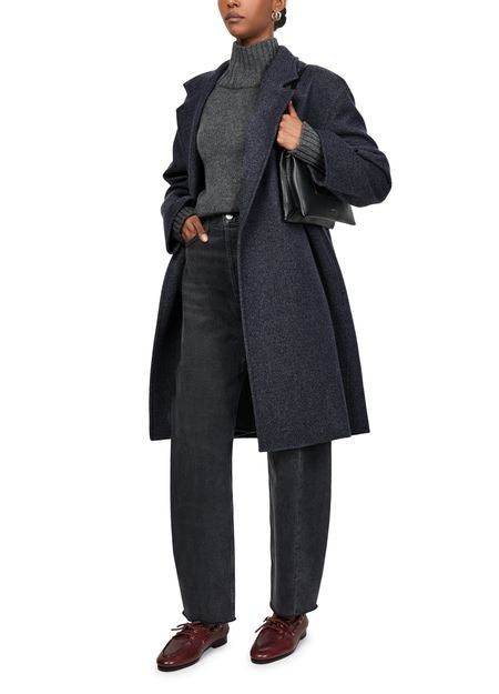 説明 : Knee length, collar, notched collar, long-sleeved, double-breasted.