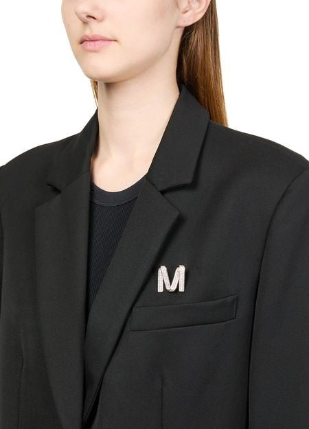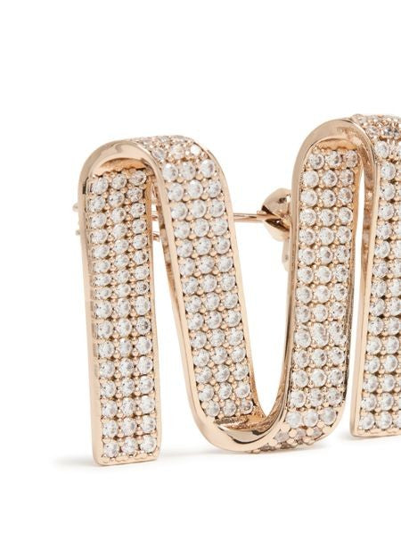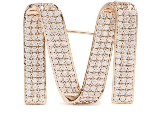 説明 : Letter-shaped, pavé diamond piece, clip closure, engraved logo, gold finish.