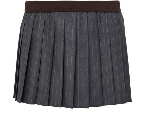 説明 : Embroidered "miu miu" logo, striped print, mini length, elasticated waist, pleated skirt.