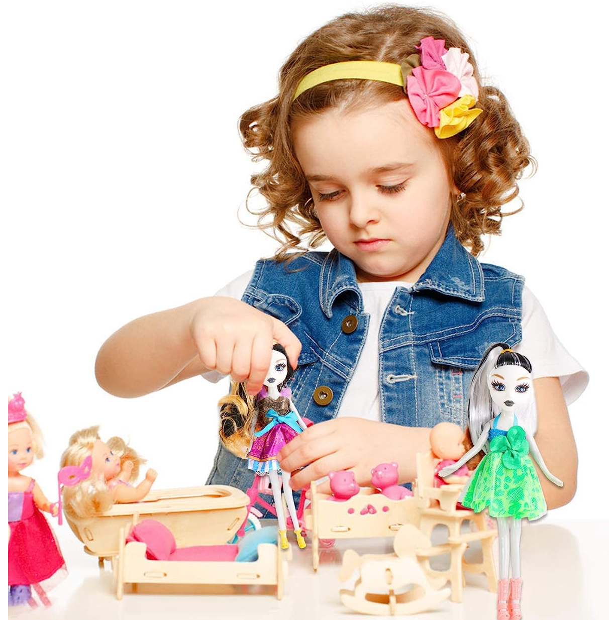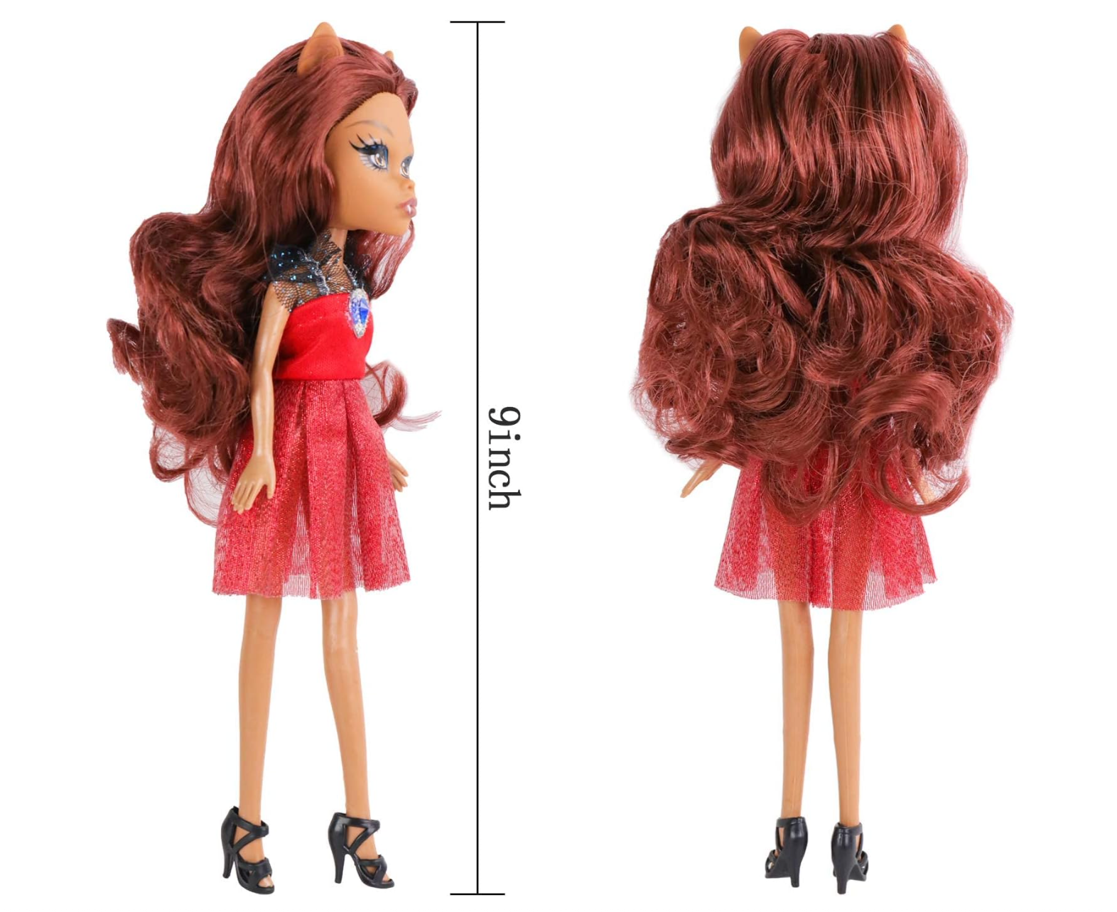 ONEST 5 Sets 9 Inch Monster Girl Dolls Include 5 Pieces Girl Monster Dolls, 5 Pieces Handmade Doll Clothes, 5 Pairs of Doll Shoes