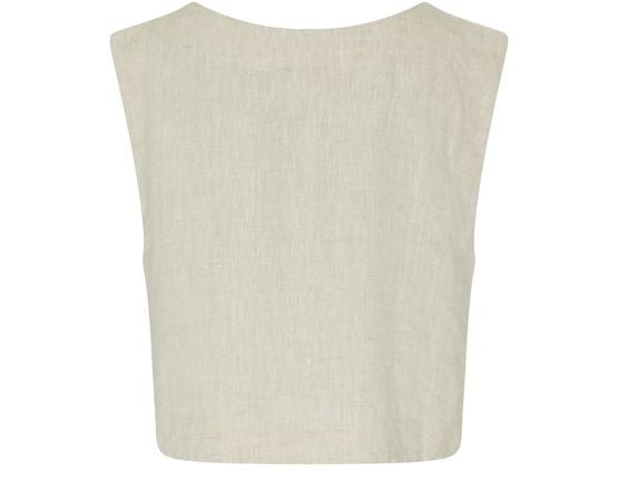 説明 : アップリケロゴ, 目に見えるステッチ, クロップ, ノースリーブ, ラウンドネック, ブラウス.
