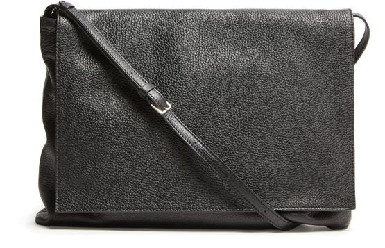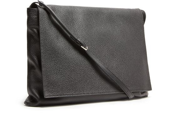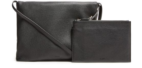 説明 : Crossbody bag, messenger bag, grained leather, thin strap, adjustable strap, detachable interior purse, visible topstitching.