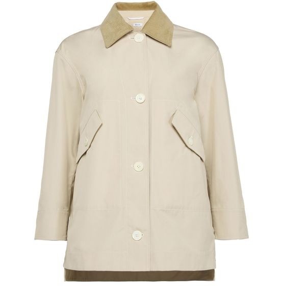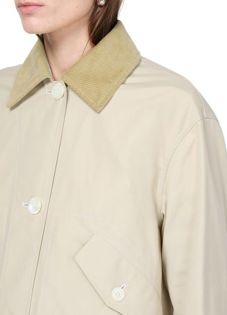 説明 : フロントボタン留め, アップリケロゴ, ショート, フラップポケット, サイドポケット, ロングスリーブ, クラシック/オーバーコート.